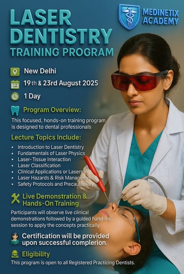 Medinetix Healthcare Academy offers advanced training in Oral & Maxillofacial Surgery, designed to enhance clinical skills through hands-on experience, expert mentorship, and exposure to a wide range of surgical procedures. The program focuses on impactions, minor oral surgeries, trauma management, and surgical pathology. Ideal for BDS and MDS graduates seeking surgical excellence, the training ensures practical learning in a real clinical environment.