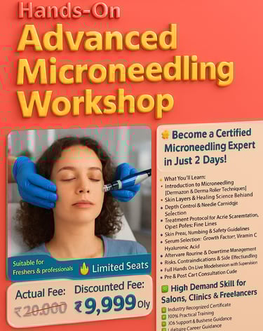 Hands-On Training: Live demonstration and practical sessions on real models using dermarollers and microneedling pens.