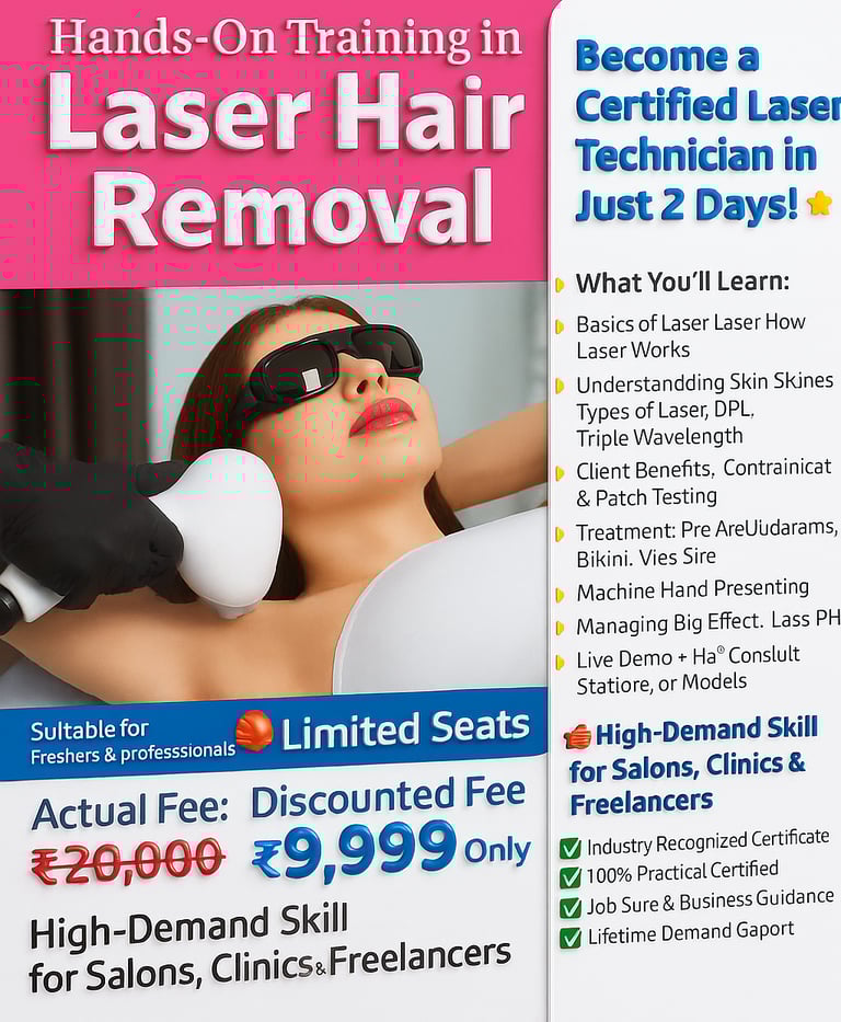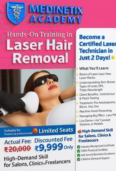 ๐ Comprehensive Curriculum: Covers hair growth cycles, skin types, laser parameters, safety protocols, and treatment planning.