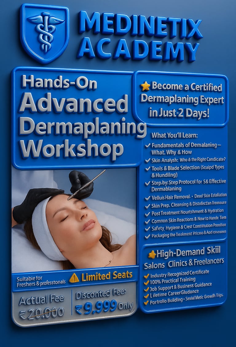 Industry-Recognized Certification: Boosts career opportunities in aesthetic clinics, medspas, and cosmetic dermatology.